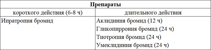 Таблица 1. Продолжительность действия ингаляционных м‑холиноблокаторов